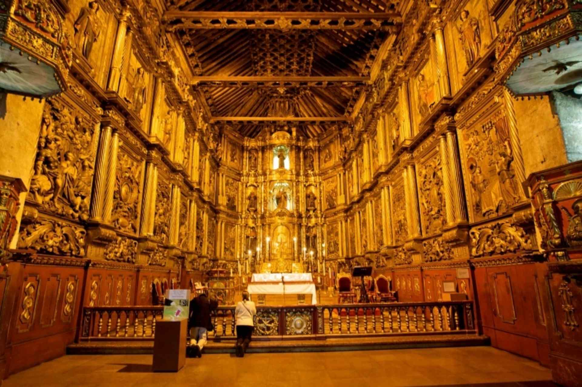 Una vez en su interior, podemos apreciar el retablo, que fue donado por Lorenzo Hernández en 1633, y el techo, donde está representado el arte mudéjar. Los arcos que dan lugar a los altares de los laterales tienen tallas platerescas típicas del periodo colonial. Cada una de las capillas fue dada en concesión a particulares, que les otorgaron su esplendor actual. La primera en ser ornamentada fue la del Camarín de la Virgen Apocalíptica, decorado con espejos, porcelanas y cornucopias, además de grandes cuadros. Son especialmente conmovedoras las imágenes de Cristo, como la del Cristo caído, de Lugo de Albarracín, y Cristo muerto, de Martínez Montañez.