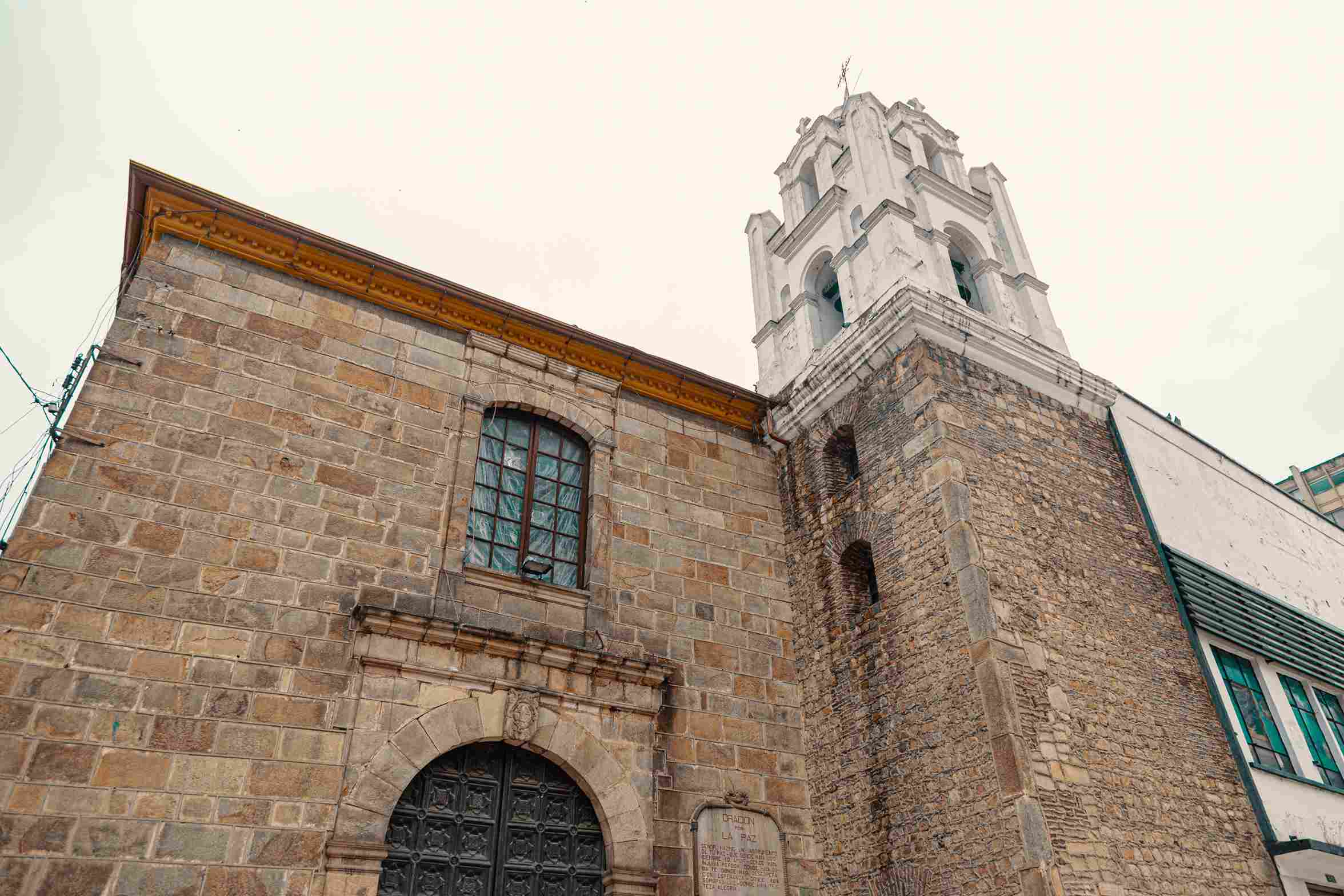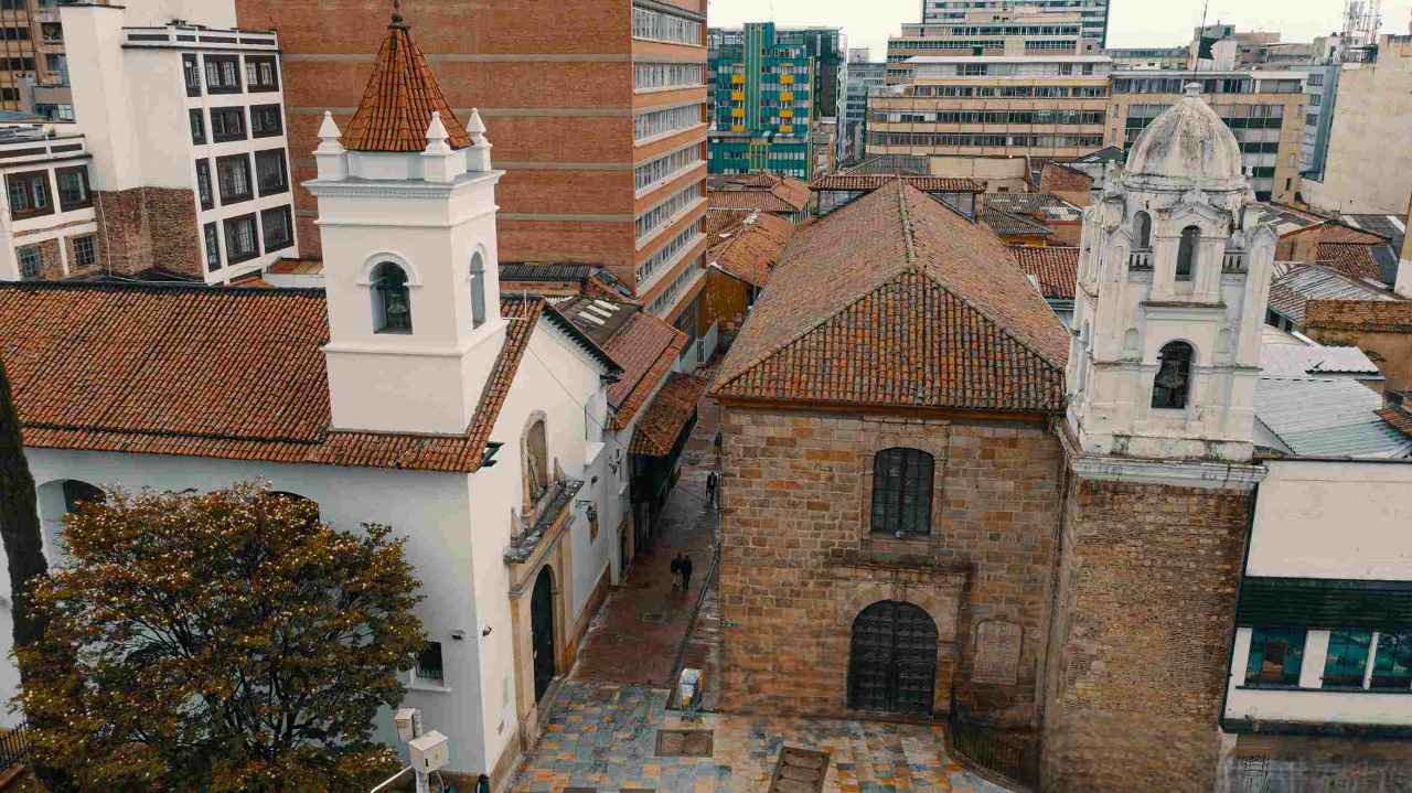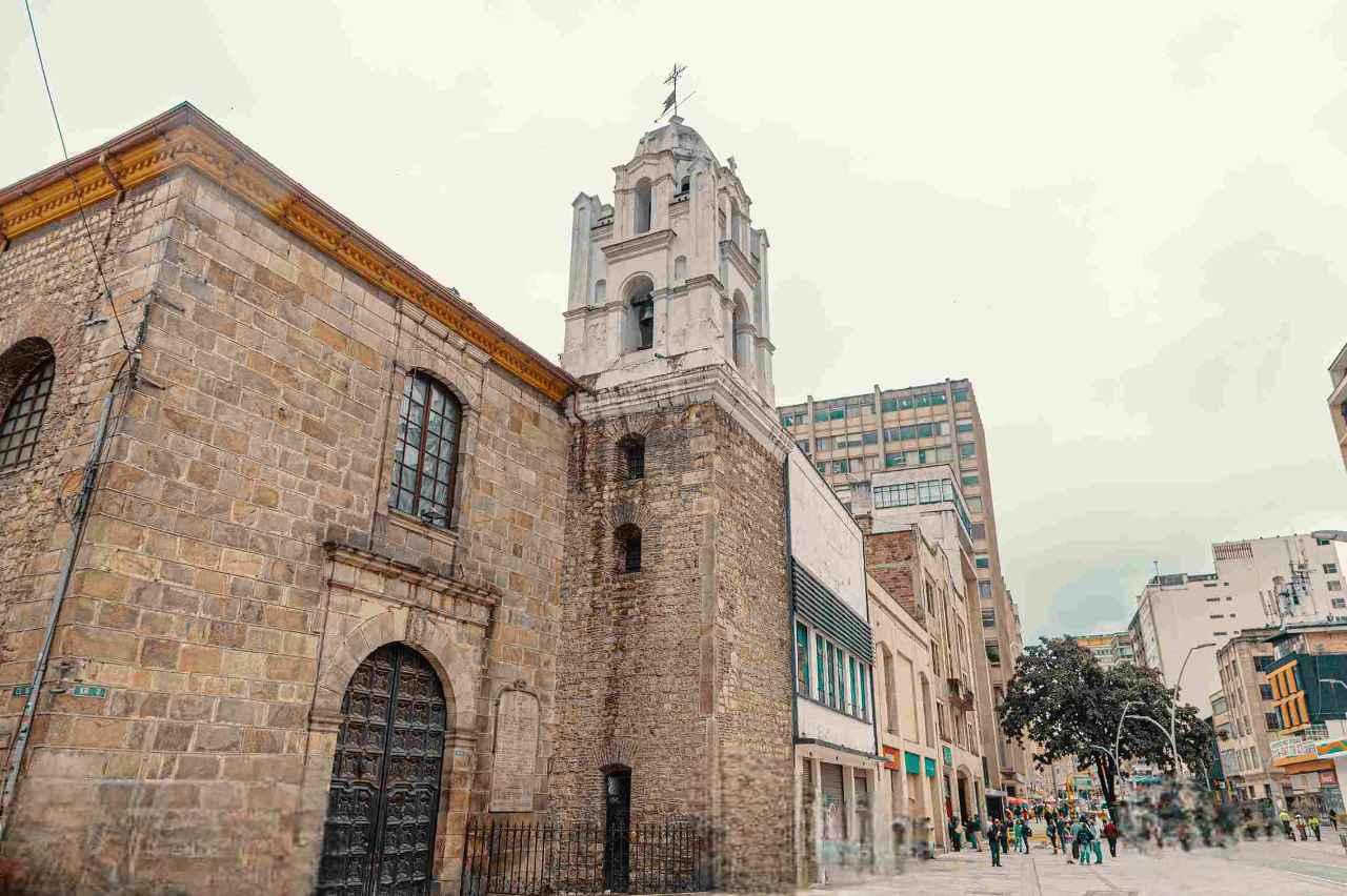 Puedes llegar en TransMilenio y bajarte en la estación Museo del Oro. A un minuto, caminando, encontrarás esta iglesia.
