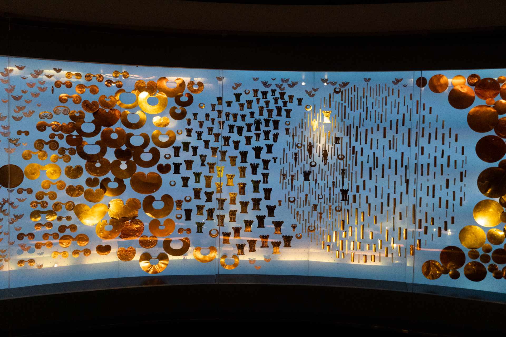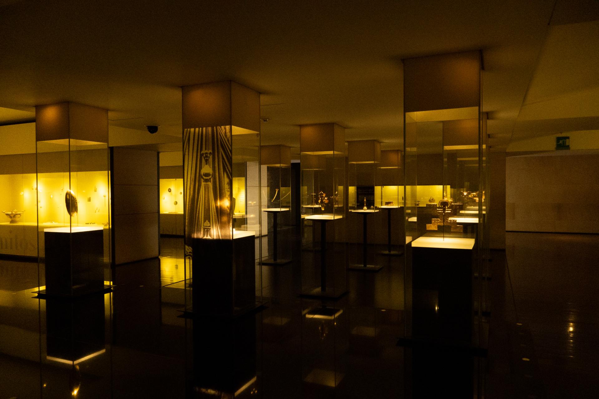 Sus notables piezas de orfebrería prehispánica están distribuidas en cuatro salas permanentes que exploran la riqueza y el ingenio de las civilizaciones antiguas. Cada sala revela la magia de las técnicas ancestrales y la sofisticación de la orfebrería colombiana. Los textos de las exposiciones permanentes son bilingües, en español e inglés.